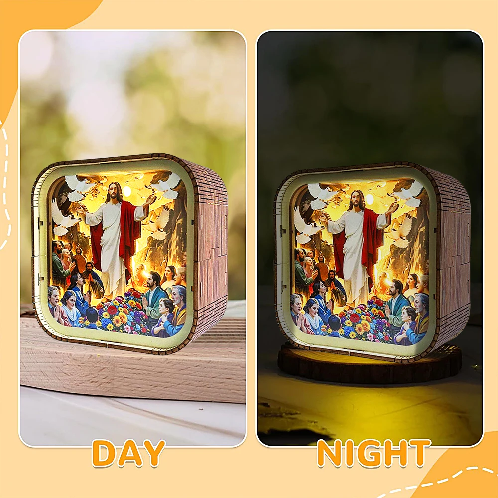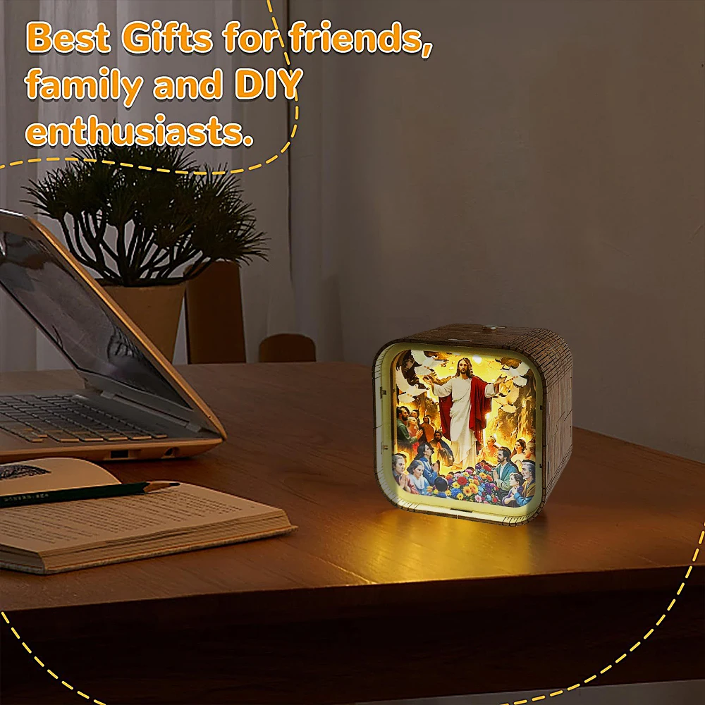 DIY 3D Wooden Jesus Resurrection Book Nook Kit with LED Light - Christian Bookshelf Insert, Religious Home Decor