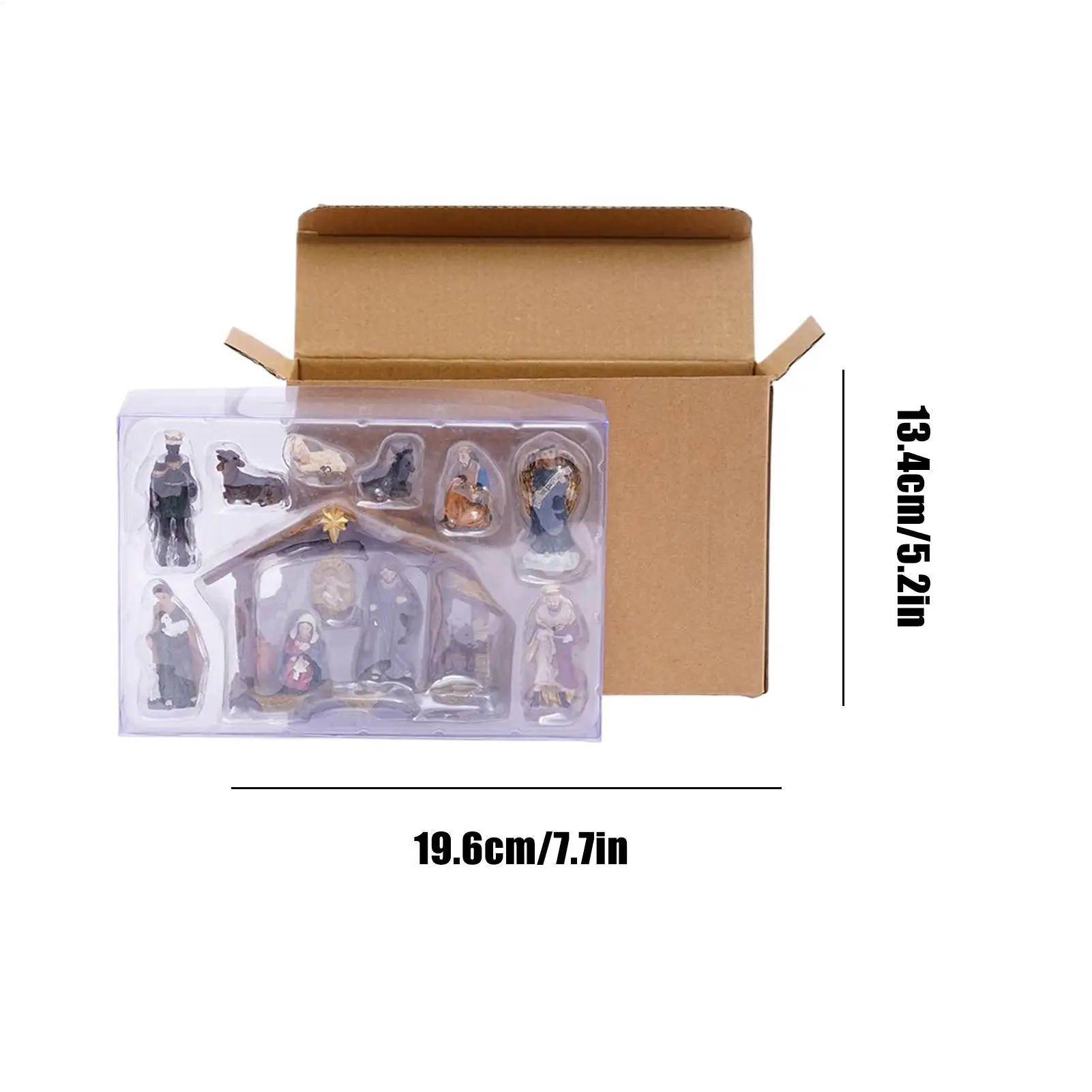 4.Compact Design: Designed with a reduced footprint, this nativity set's miniature proportions allow flexible placement on desks, windowsills, or shelves, complementing the surrounding interior decor without demanding extra space
